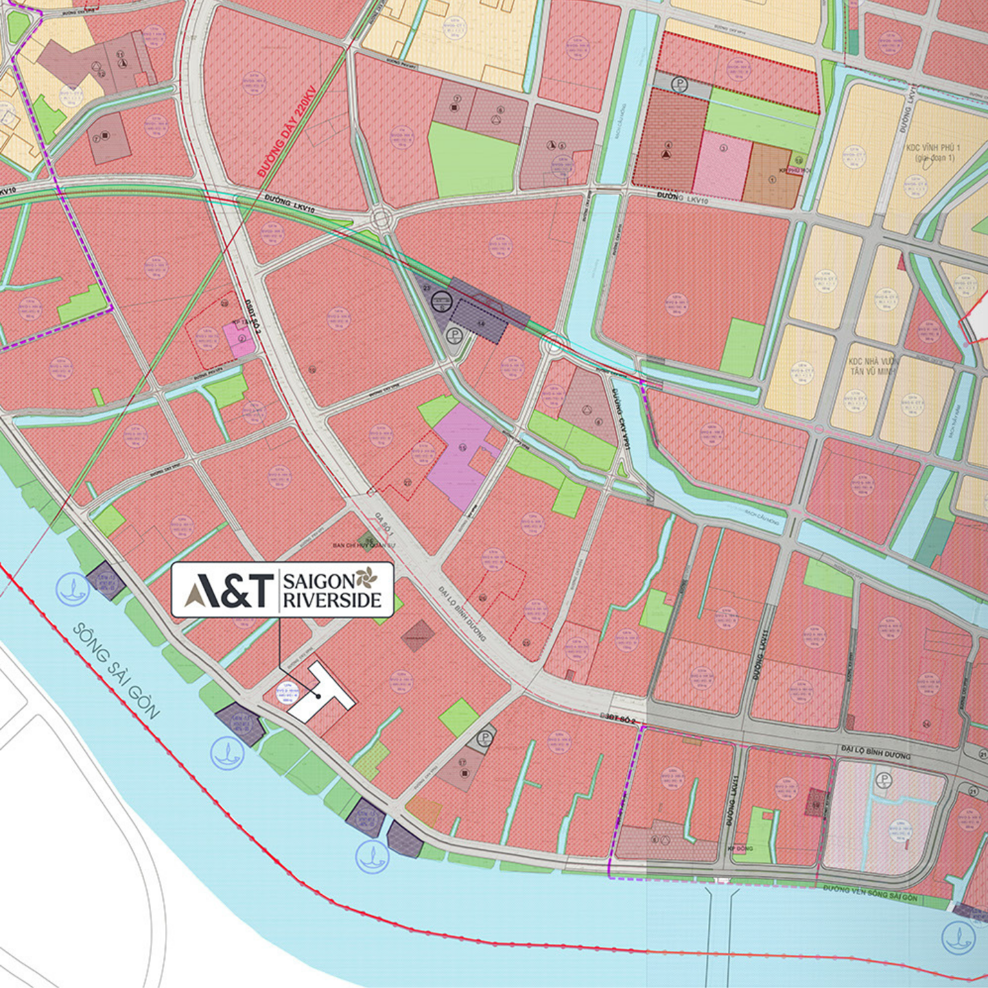 AT Saigon Riverside tọa lạc tại vị trí quỹ đất hiếm hoi bên sông Sài Gòn, ngay tại trung tâm Đông Bắc TP.HCM, nằm giữa 2 tuyến đường huyết mạch: con đường ven sông Sài Gòn rộng 32 m và Quốc lộ 13 rộng 64m – nơi hội tụ nhịp sống trung tâm, tầm nhìn giá trị và kết nối giao thương.